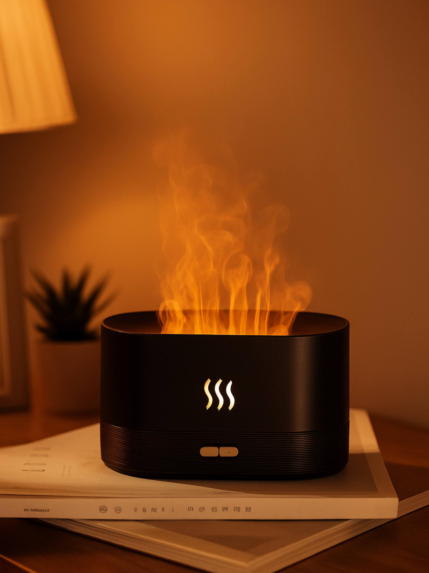 The realistic flame LED light adds a warm, cozy glow—perfect for winding down in the evening or enhancing your daily relaxation routine. With adjustable brightness and quiet operation, it fits seamlessly into bedrooms, offices, and personal spaces without distraction.